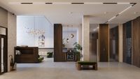Широкое пространство, наполненное светом, встречает гостей и жителей с первых шагов. Высокие потолки, украшенные изысканными люстрами, создают атмосферу величия и комфорта, а приветливый консьерж всегда готов помочь с любыми вопросами.