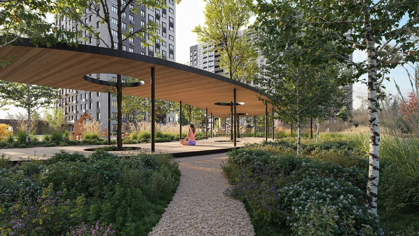 Актив-парк с эко-благоустройством и игровыми площадками.